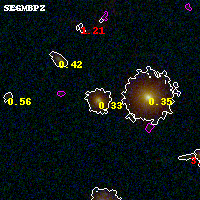 Black segments are analyzed here. Roll mouse over color images to view segments. Best viewed in a wide browser window (1200 pixels or more). Download SED & P(z) plots to view larger versions.