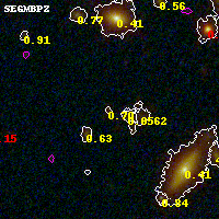 Black segments are analyzed here. Roll mouse over color images to view segments. Best viewed in a wide browser window (1200 pixels or more). Download SED & P(z) plots to view larger versions.