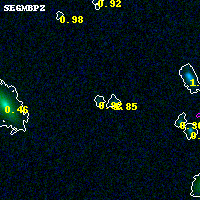 Object #2442   x,y = (1030, 2735)   RA, Dec = (00:32:17.448, 18:08:06.72) = (8.07270, 18.13520)   BPZ = 0.919 [0.198--1.868]   type = 9.90 (SB3_B10 - SB2_B10)   chisq2 = 0.27   ODDS = 0.21   z_cluster = 0.396