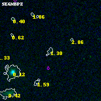 Black segments are analyzed here. Roll mouse over color images to view segments. Best viewed in a wide browser window (1200 pixels or more). Download SED & P(z) plots to view larger versions.