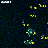 Black segments are analyzed here. Roll mouse over color images to view segments. Best viewed in a wide browser window (1200 pixels or more). Download SED & P(z) plots to view larger versions.