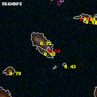 Black segments are analyzed here. Roll mouse over color images to view segments. Best viewed in a wide browser window (1200 pixels or more). Download SED & P(z) plots to view larger versions.