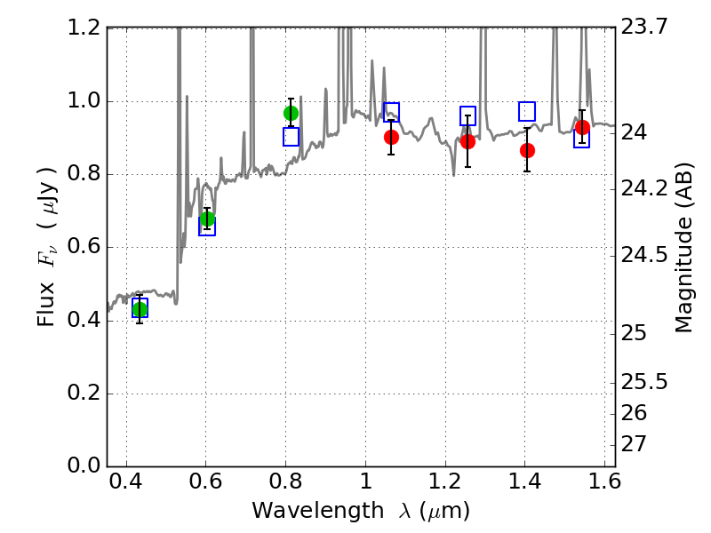 Object #2639   x,y = (2063, 2647)   RA, Dec = (00:32:13.104, 18:08:01.68) = (8.05460, 18.13380)   BPZ = 0.426 [0.142--0.527]   type = 9.60 (SB3_B10 - SB2_B10)   chisq2 = 0.93   ODDS = 0.43   z_cluster = 0.396