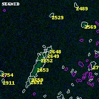 Black segments are analyzed here. Roll mouse over color images to view segments. Best viewed in a wide browser window (1200 pixels or more). Download SED & P(z) plots to view larger versions.