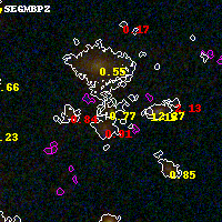 Object #2823   x,y = (2871, 2539)   RA, Dec = (00:32:09.696, 18:07:55.20) = (8.04040, 18.13200)   BPZ = 0.773 [0.186--0.905]   type = 10.00 (SB3_B10)   chisq2 = 0.47   ODDS = 0.41   z_cluster = 0.396