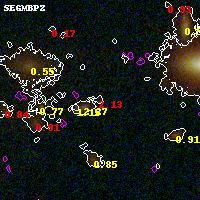 Black segments are analyzed here. Roll mouse over color images to view segments. Best viewed in a wide browser window (1200 pixels or more). Download SED & P(z) plots to view larger versions.