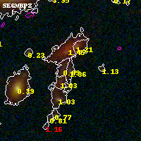 Object #2897   x,y = (3127, 2468)   RA, Dec = (00:32:08.616, 18:07:50.88) = (8.03590, 18.13080)   BPZ = 1.360 [1.203--1.517]   type = 9.50 (SB3_B10 - SB2_B10)   chisq2 = 0.22   ODDS = 0.77   z_cluster = 0.396