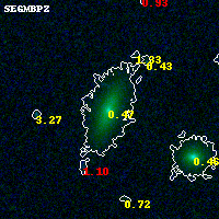 Black segments are analyzed here. Roll mouse over color images to view segments. Best viewed in a wide browser window (1200 pixels or more). Download SED & P(z) plots to view larger versions.