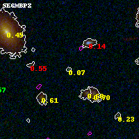 Black segments are analyzed here. Roll mouse over color images to view segments. Best viewed in a wide browser window (1200 pixels or more). Download SED & P(z) plots to view larger versions.