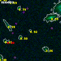 Black segments are analyzed here. Roll mouse over color images to view segments. Best viewed in a wide browser window (1200 pixels or more). Download SED & P(z) plots to view larger versions.