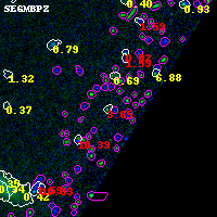 Black segments are analyzed here. Roll mouse over color images to view segments. Best viewed in a wide browser window (1200 pixels or more). Download SED & P(z) plots to view larger versions.