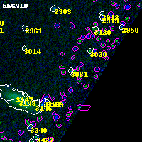 Black segments are analyzed here. Roll mouse over color images to view segments. Best viewed in a wide browser window (1200 pixels or more). Download SED & P(z) plots to view larger versions.