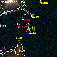 Object #3131   x,y = (3519, 2394)   RA, Dec = (00:32:06.960, 18:07:46.56) = (8.02900, 18.12960)   BPZ = 1.901 [1.180--2.823]   type = 9.70 (SB3_B10 - SB2_B10)   chisq2 = 0.97   ODDS = 0.20   z_cluster = 0.396