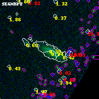Black segments are analyzed here. Roll mouse over color images to view segments. Best viewed in a wide browser window (1200 pixels or more). Download SED & P(z) plots to view larger versions.