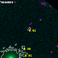 Object #333   x,y = (2614, 4403)   RA, Dec = (00:32:10.776, 18:09:46.80) = (8.04490, 18.16300)   BPZ = 0.909 [0.446--1.643]   type = 7.50 (SB1_B10 - Scd_B10)   chisq2 = 0.04   ODDS = 0.23   z_cluster = 0.396