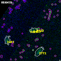 Object #3414   x,y = (319, 2247)   RA, Dec = (00:32:20.448, 18:07:37.56) = (8.08520, 18.12710)   BPZ = 3.479 [0.017--3.645]   type = 11.00 (SB11_A_0_l)   chisq2 = 444.70   ODDS = 0.86   z_cluster = 0.396