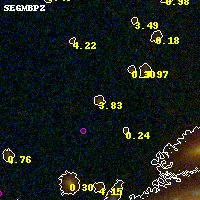 Object #3571   x,y = (2412, 2176)   RA, Dec = (00:32:11.616, 18:07:33.24) = (8.04840, 18.12590)   BPZ = 3.835 [0.274--4.139]   type = 8.70 (SB2_B10 - SB1_B10)   chisq2 = 0.19   ODDS = 0.47   z_cluster = 0.396