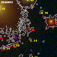 Object #3581   x,y = (2975, 1965)   RA, Dec = (00:32:09.264, 18:07:20.64) = (8.03860, 18.12240)   BPZ = 1.216 [1.132--1.472]   type = 9.80 (SB3_B10 - SB2_B10)   chisq2 = 2.44   ODDS = 0.81   z_cluster = 0.396