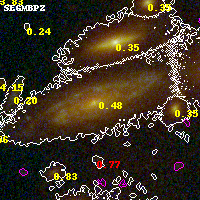 Object #3592   x,y = (2511, 2072)   RA, Dec = (00:32:11.208, 18:07:27.12) = (8.04670, 18.12420)   BPZ = 0.483 [0.405--0.546]   type = 6.50 (Scd_B10 - Sbc_B10)   chisq2 = 0.07   ODDS = 0.90   z_cluster = 0.396