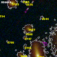 Object #3687   x,y = (2005, 2084)   RA, Dec = (00:32:13.344, 18:07:27.84) = (8.05560, 18.12440)   BPZ = 0.232 [0.156--0.284]   type = 3.80 (Ell4_A_0 - Ell5_A_0)   chisq2 = 0.27   ODDS = 0.89   z_cluster = 0.396