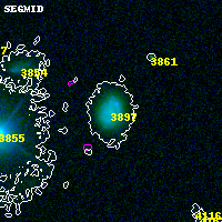 Object #3897   x,y = (1337, 1942)   RA, Dec = (00:32:16.152, 18:07:19.20) = (8.06730, 18.12200)   BPZ = 0.207 [0.104--0.406]   type = 7.50 (SB1_B10 - Scd_B10)   chisq2 = 0.01   ODDS = 0.64   z_cluster = 0.396