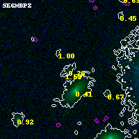Object #3905   x,y = (1113, 1937)   RA, Dec = (00:32:17.088, 18:07:18.84) = (8.07120, 18.12190)   BPZ = 0.259 [0.085--3.114]   type = 9.40 (SB2_B10 - SB3_B10)   chisq2 = 0.01   ODDS = 0.15   z_cluster = 0.396