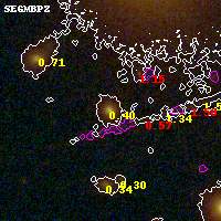 Black segments are analyzed here. Roll mouse over color images to view segments. Best viewed in a wide browser window (1200 pixels or more). Download SED & P(z) plots to view larger versions.