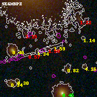 Black segments are analyzed here. Roll mouse over color images to view segments. Best viewed in a wide browser window (1200 pixels or more). Download SED & P(z) plots to view larger versions.