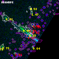 Black segments are analyzed here. Roll mouse over color images to view segments. Best viewed in a wide browser window (1200 pixels or more). Download SED & P(z) plots to view larger versions.