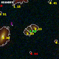 Object #4121   x,y = (2277, 1816)   RA, Dec = (00:32:12.192, 18:07:11.64) = (8.05080, 18.11990)   BPZ = 3.620 [3.486--3.815]   type = 8.80 (SB2_B10 - SB1_B10)   chisq2 = 0.14   ODDS = 0.97   z_cluster = 0.396