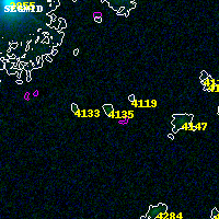 Object #4135   x,y = (1326, 1824)   RA, Dec = (00:32:16.200, 18:07:12.36) = (8.06750, 18.12010)   BPZ = 0.441 [0.228--3.896]   type = 6.10 (Sbc_B10 - Scd_B10)   chisq2 = 0.02   ODDS = 0.31   z_cluster = 0.396