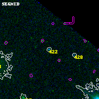 Object #422   x,y = (2868, 4268)   RA, Dec = (00:32:09.720, 18:09:38.88) = (8.04050, 18.16080)   BPZ = 0.388 [0.047--3.097]   type = 10.90 (SB11_A_0_l - SB3_B10)   chisq2 = 0.21   ODDS = 0.17   z_cluster = 0.396