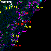Black segments are analyzed here. Roll mouse over color images to view segments. Best viewed in a wide browser window (1200 pixels or more). Download SED & P(z) plots to view larger versions.