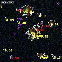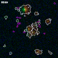 Black segments are analyzed here. Roll mouse over color images to view segments. Best viewed in a wide browser window (1200 pixels or more). Download SED & P(z) plots to view larger versions.