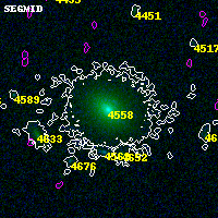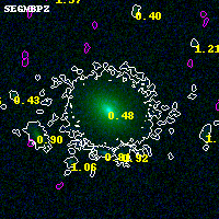 Object #4558   x,y = (1245, 1509)   RA, Dec = (00:32:16.536, 18:06:53.28) = (8.06890, 18.11480)   BPZ = 0.480 [0.347--0.532]   type = 5.60 (Sbc_B10 - ES0_B10)   chisq2 = 0.00   ODDS = 0.81   z_cluster = 0.396