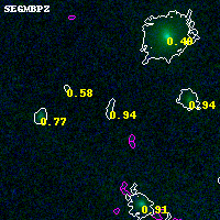Black segments are analyzed here. Roll mouse over color images to view segments. Best viewed in a wide browser window (1200 pixels or more). Download SED & P(z) plots to view larger versions.