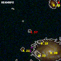 Object #4730   x,y = (2164, 1425)   RA, Dec = (00:32:12.672, 18:06:48.24) = (8.05280, 18.11340)   BPZ = 1.570 [0.286--3.025]   type = 10.00 (SB3_B10)   chisq2 = 1.25   ODDS = 0.32   z_cluster = 0.396