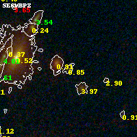 Black segments are analyzed here. Roll mouse over color images to view segments. Best viewed in a wide browser window (1200 pixels or more). Download SED & P(z) plots to view larger versions.