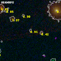 Object #4823   x,y = (3509, 1354)   RA, Dec = (00:32:07.008, 18:06:43.92) = (8.02920, 18.11220)   BPZ = 0.907 [0.320--1.085]   type = 9.60 (SB3_B10 - SB2_B10)   chisq2 = 0.40   ODDS = 0.33   z_cluster = 0.396