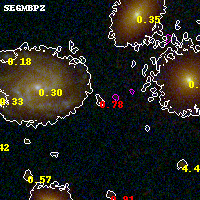 Black segments are analyzed here. Roll mouse over color images to view segments. Best viewed in a wide browser window (1200 pixels or more). Download SED & P(z) plots to view larger versions.