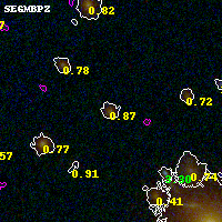 Black segments are analyzed here. Roll mouse over color images to view segments. Best viewed in a wide browser window (1200 pixels or more). Download SED & P(z) plots to view larger versions.