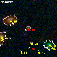 Black segments are analyzed here. Roll mouse over color images to view segments. Best viewed in a wide browser window (1200 pixels or more). Download SED & P(z) plots to view larger versions.