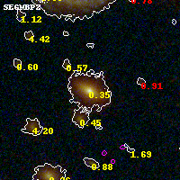 Black segments are analyzed here. Roll mouse over color images to view segments. Best viewed in a wide browser window (1200 pixels or more). Download SED & P(z) plots to view larger versions.