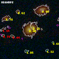 Black segments are analyzed here. Roll mouse over color images to view segments. Best viewed in a wide browser window (1200 pixels or more). Download SED & P(z) plots to view larger versions.