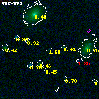 Black segments are analyzed here. Roll mouse over color images to view segments. Best viewed in a wide browser window (1200 pixels or more). Download SED & P(z) plots to view larger versions.
