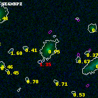 Black segments are analyzed here. Roll mouse over color images to view segments. Best viewed in a wide browser window (1200 pixels or more). Download SED & P(z) plots to view larger versions.
