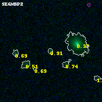 Black segments are analyzed here. Roll mouse over color images to view segments. Best viewed in a wide browser window (1200 pixels or more). Download SED & P(z) plots to view larger versions.