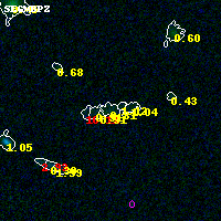 Object #5542   x,y = (2433, 720)   RA, Dec = (00:32:11.544, 18:06:06.12) = (8.04810, 18.10170)   BPZ = 0.811 [0.582--1.541]   type = 7.70 (SB1_B10 - Scd_B10)   chisq2 = 0.01   ODDS = 0.26   z_cluster = 0.396