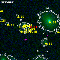 Object #764   x,y = (2919, 3819)   RA, Dec = (00:32:09.504, 18:09:11.88) = (8.03960, 18.15330)   BPZ = 0.450 [0.149--3.023]   type = 9.90 (SB3_B10 - SB2_B10)   chisq2 = 0.08   ODDS = 0.06   z_cluster = 0.396