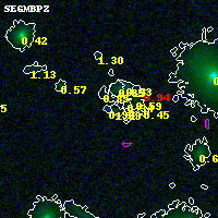 Object #769   x,y = (2887, 3818)   RA, Dec = (00:32:09.624, 18:09:11.88) = (8.04010, 18.15330)   BPZ = 0.305 [0.128--3.436]   type = 9.60 (SB3_B10 - SB2_B10)   chisq2 = 0.05   ODDS = 0.12   z_cluster = 0.396
